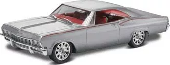 This is the 1/25 Scale '65 Chevy Impala Plastic Model Kit from Revell. Suitable for Ages 14 & Older. FEATURES: Highly detailed plastic pieces molded in white, transparent red and clear Chrome plated parts and soft black tires Custom Foose design wheels Detailed Chevy engine customized by Chip Foose Detailed interior with separate console Waterslide decals Illustrated instructions INCLUDES: One plastic model REQUIRES: Assembly Hobby knife (RMXR6909) Cement for plastics (TESR3512) Sprue cutters (HCAR0630) Paint (Chevrolet Engine Red, Flat Black, Flat Red, Gloss Silver Metallic, Gunmetal, Semi-Gloss Black, Steel, Transparent Orange, Gloss White, Body Color) SPECS: Scale: 1/25 Length: 8-1/2" (215.9mm) Width: 3" (76.2mm) Height: 2-1/4" (57.15mm) Skill level: 5 Parts: 142 COMMENTS: Due to small parts that could cause a choking hazard please keep away from children 3 years of age and younger tlc 11/15/13 updated tlc 1/22/14 updated tlc 12/28/16