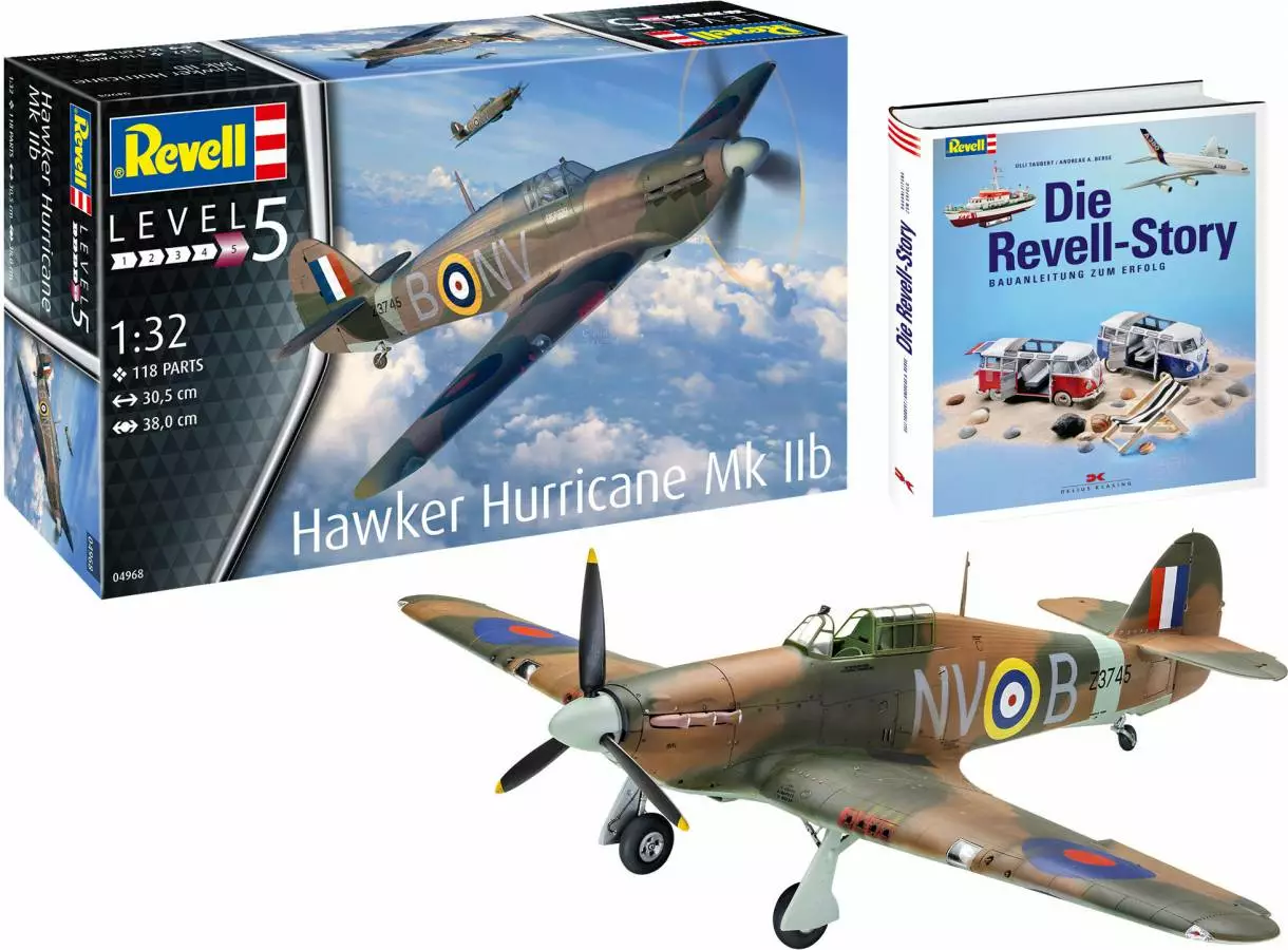 The model kit Hawker Hurricane Mk IIb in 1:32 scale is a great kit for all model enthusiasts from 13 years. With 118 parts and a length of 305 mm and wingspan of 380 mm, it offers many possibilities for detail design.